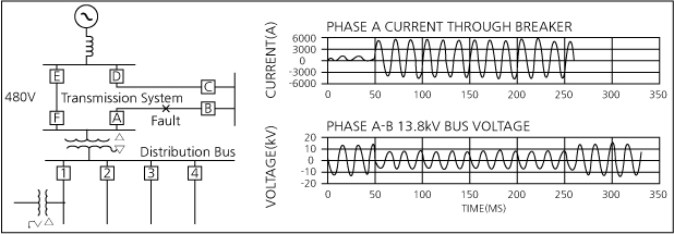 When 1-line ground fault, 2-line ground fault and a short circuit, or 3-phase short circuit accident occur in the power system, the accident point is disconnected and voltage sag and interruption occur while the fault is removed. As shown in the figure below, when an accident occurs on the transmission line, the A·B circuit breaker operates to generate a voltage sag while the accident point is disconnected.