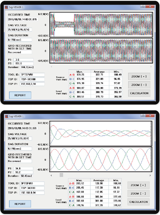 - Sag detection level, normal voltage return level: can be specified according to the installation site