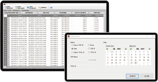 The TSP® Monitor displays simple current operational status information of a number of TSP®s on one screen, enabling users to identify by the tool ID of each equipment connected to each TSP®, and if you double-click the tool ID, you can view the details of the current operating status of the relevant TSP®