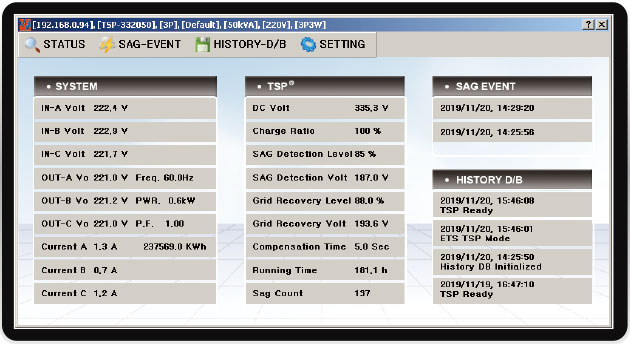- History D/B: Displays the overall operating status of TSP®