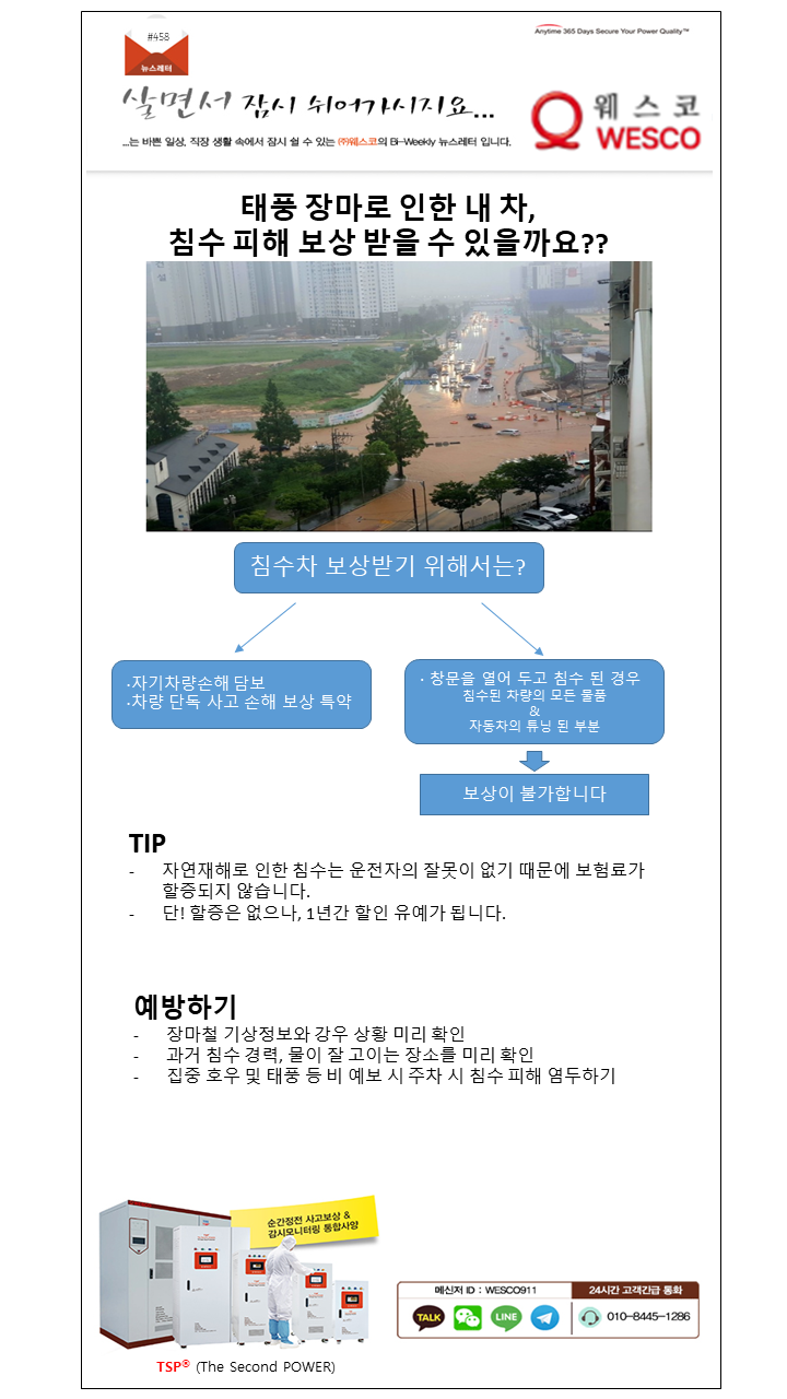 [웨스코 뉴스레터 458] 태풍 장마로 인한 내 차 침수 피해 보상 받을 수 있을까요?
