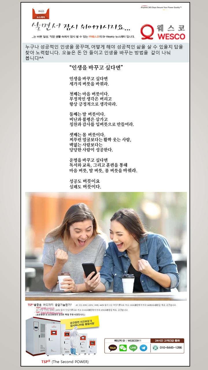 [웨스코 뉴스레터 466] 인생을 바꾸고 싶다면